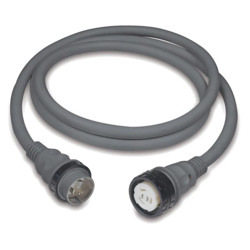 Heavy duty, super flexible marine-grade cable with watertight molded plugs and connectors. The boatside connector features a molded-in LED light for visual power indication.