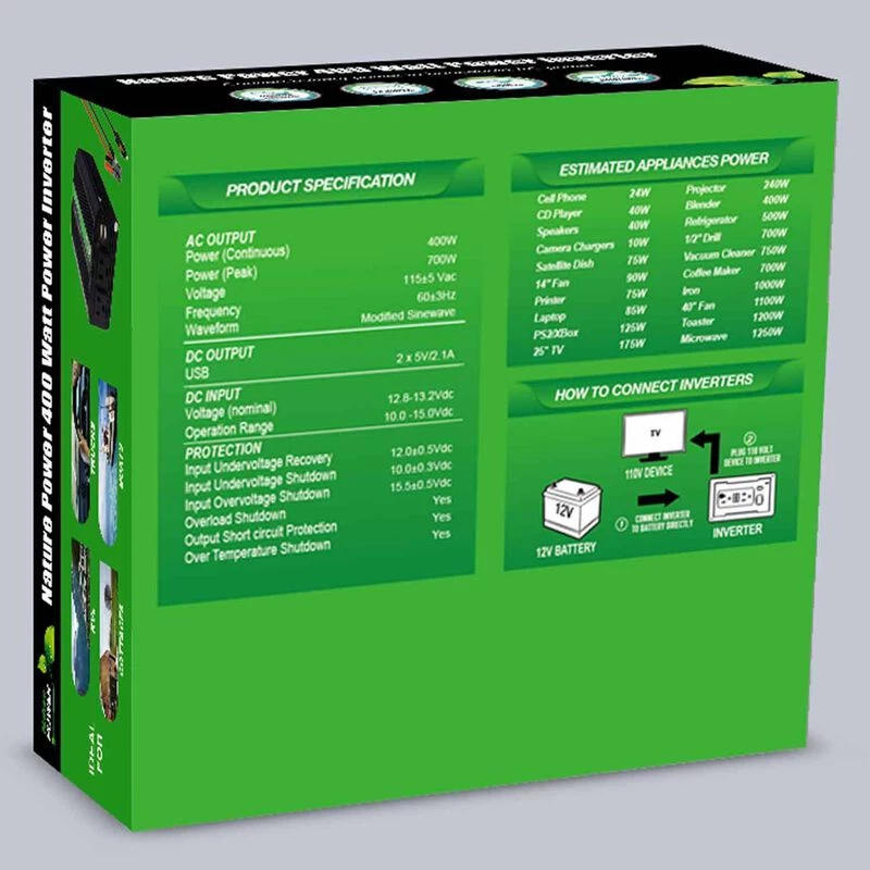 - 400 Watt Continuous Output/700 Watt Surge