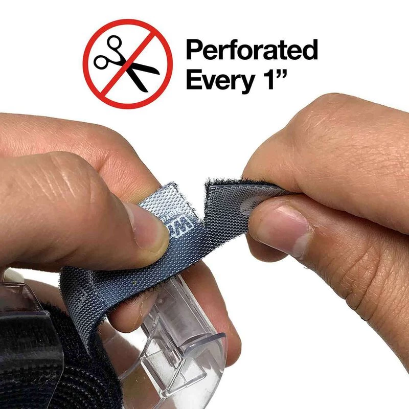 If you have lots of cord-cleanup to do, but aren’t allowed to run with scissors, this Self-Gripping Perforated Roll lets you tear off as much or as little hook and loop as you need. No scissors required! Each roll is 6-1/2 in. of hook and loop with perforations every 1 inch.