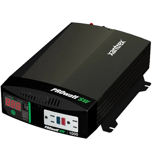 When converting DC power to AC power for sensitive electronics or variable speed power tools, pure sine wave inverters are the only way to go. Xantrex PROWatt SW inverters are a great way to protect electronics, dimmers and tools by providing AC comparable to utility company or shore power supplied power—all at a value price. Sized to handle moderate AC demands each compact and lightweight inverter is packed with features to make use and installation easier.